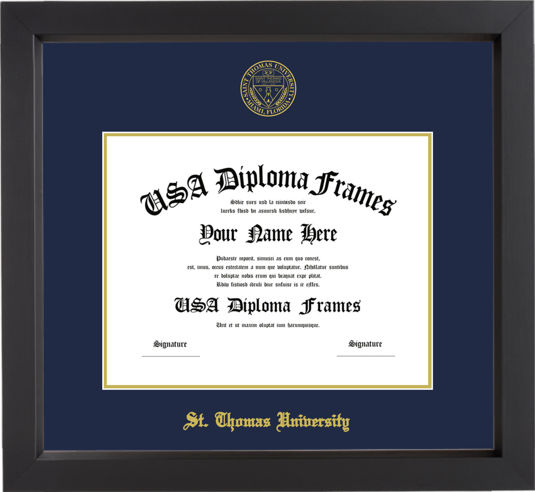 St. Thomas University – Single Horizontal Document ( Bachelors ) – Black Matte – Navy Mat – Gold Accent Mat – With Seal(University Seal Gold) – With Gold Embossing (St. Thomas University)