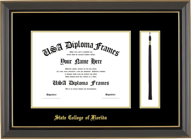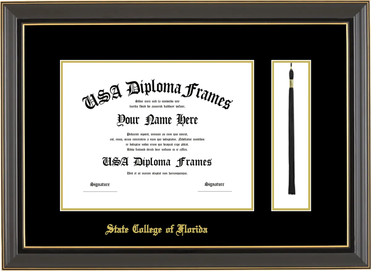 State College of Florida – Single Horizontal Document ( 8 1/2″x11″ ) – Black Gold Trim Glossy – Black Mat – Gold Accent Mat – With Tassel(Default) – With Gold Embossing (State College of Florida)