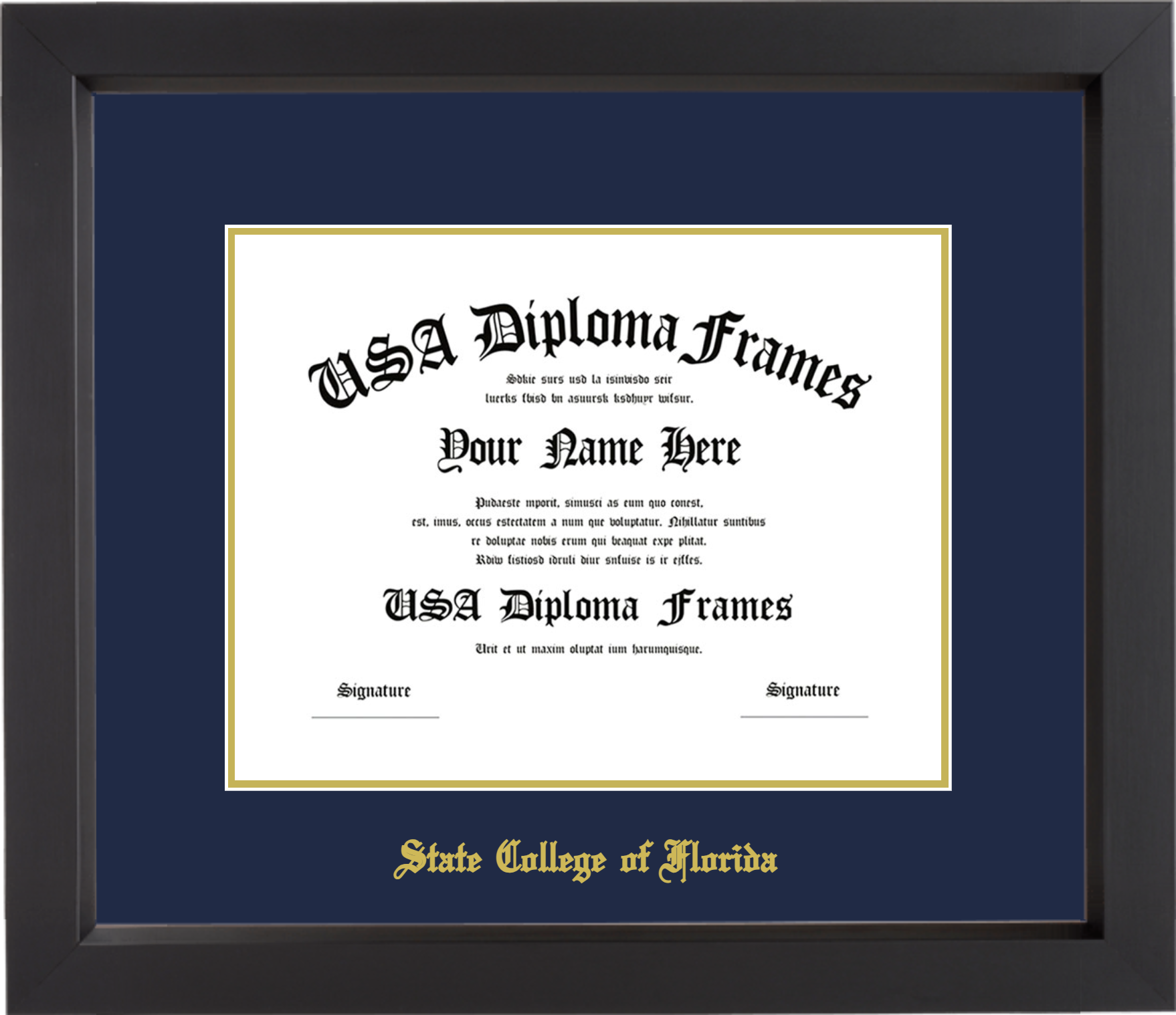 State College of Florida – Single Horizontal Document ( 8 1/2″x11″ ) – Black Matte – Navy Mat – Gold Accent Mat – With Gold Embossing (State College of Florida)