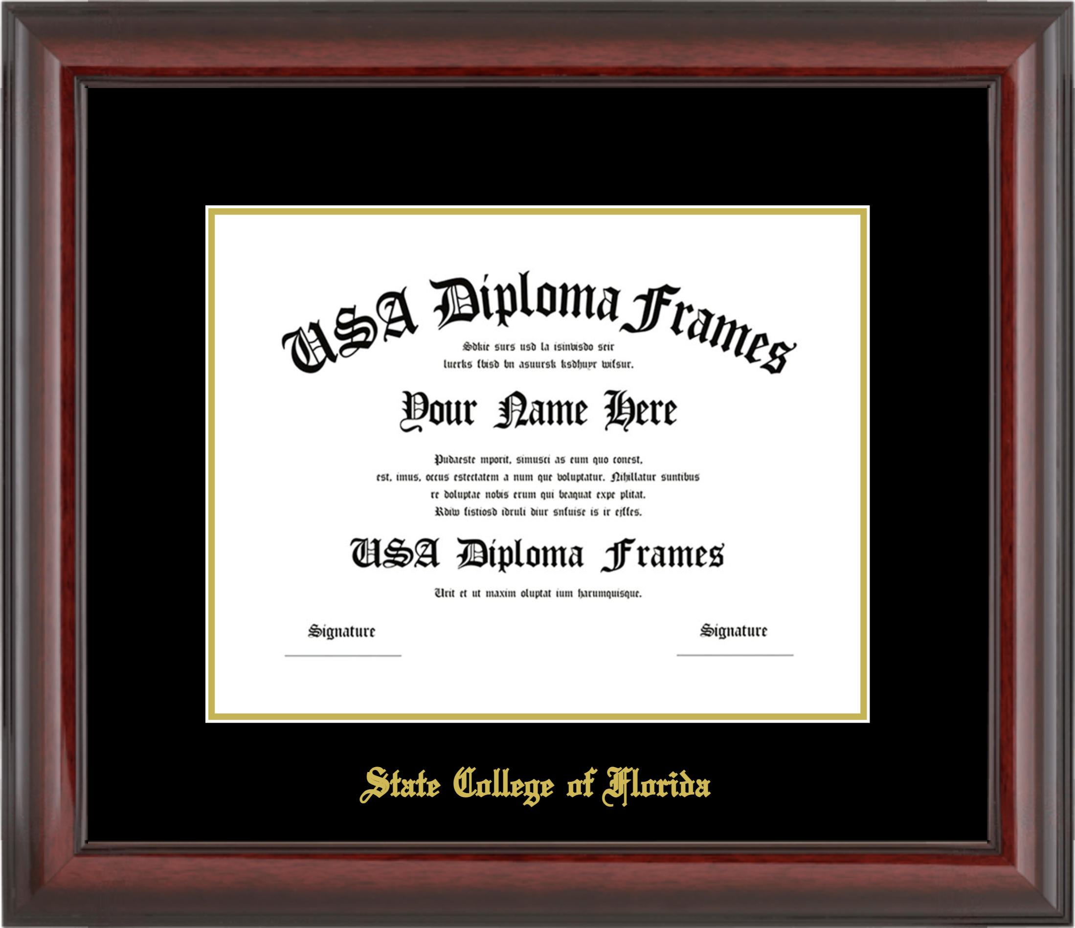 State College of Florida Diploma Frame – Cherry Mahogany Glossy – Black and Gold Mat