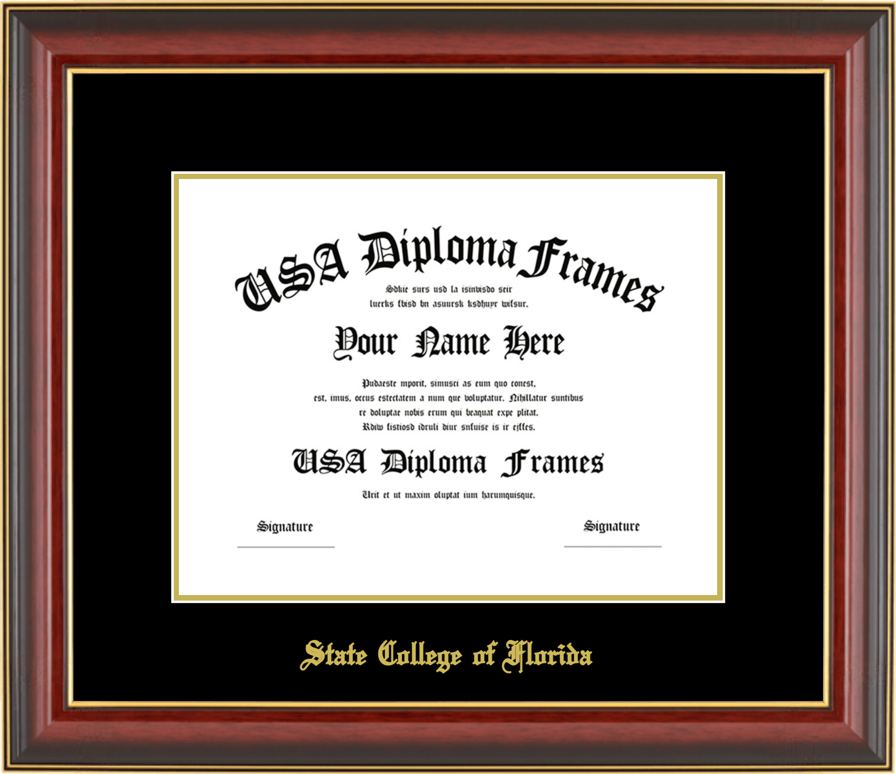 State College of Florida Diploma Frame – Cherry Mahogany Gold Trim Glossy – Black and Gold Mat