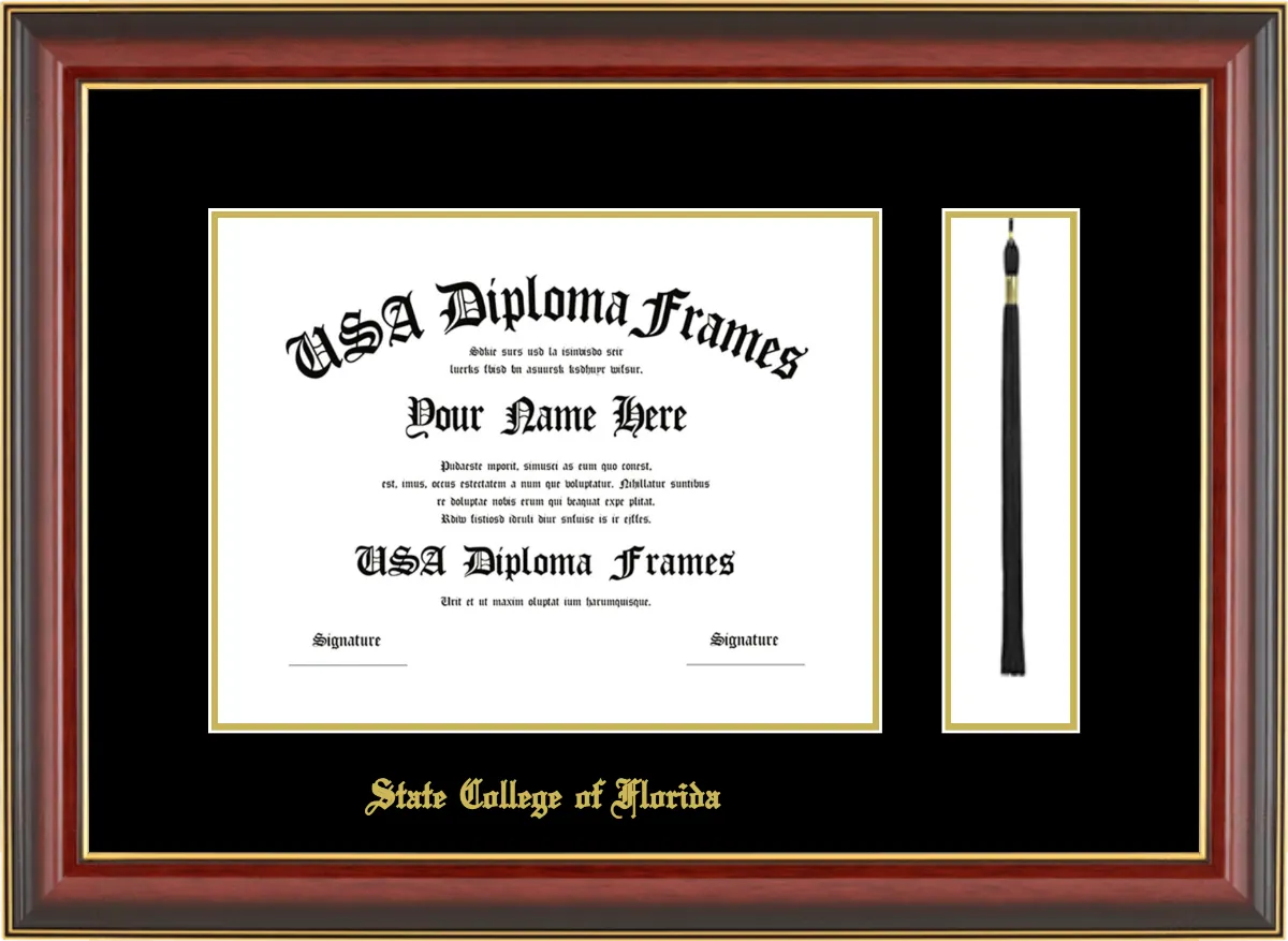 State College of Florida – Single Horizontal Document ( 8 1/2″x11″ ) – Cherry Mahogany Gold Trim Glossy – Black Mat – Gold Accent Mat – With Tassel(Default) – With Gold Embossing (State College of Florida)