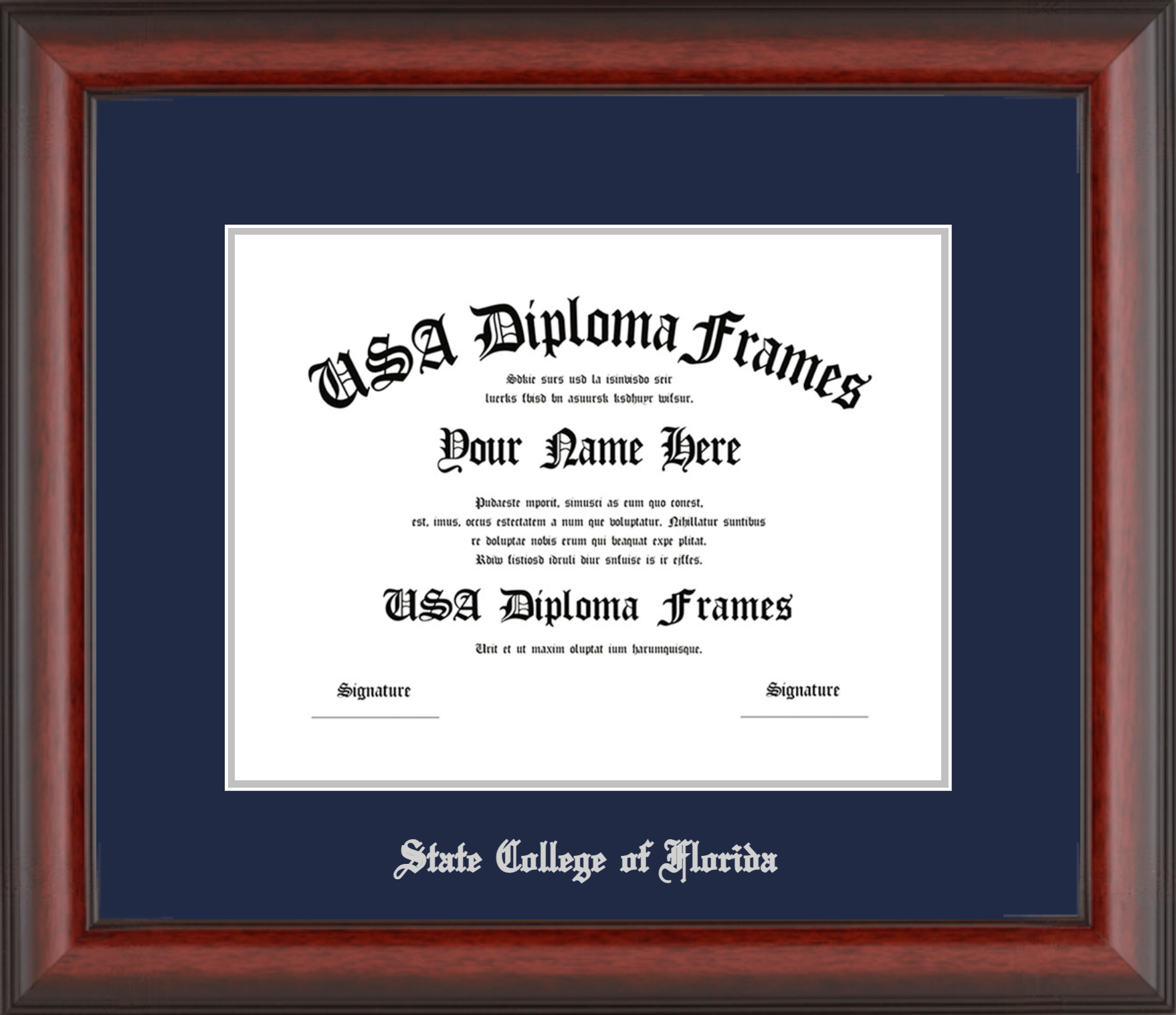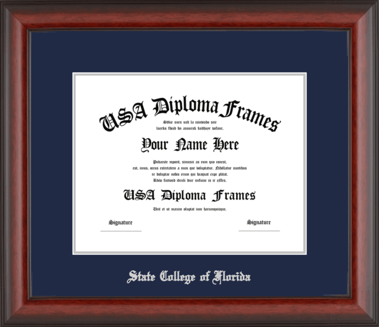 State College of Florida Diploma Frame – Cherry Mahogany Matte – Navy and Silver Mat