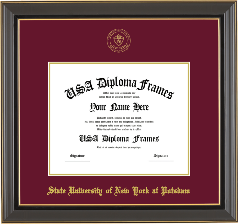 Want to explore more styles? Browse our full range of diploma frame layouts, or visit the State University of New York at Potsdam to view options available for your school. Looking for a fully personalized design? Try our custom Frame Builder and create a frame that’s uniquely yours.