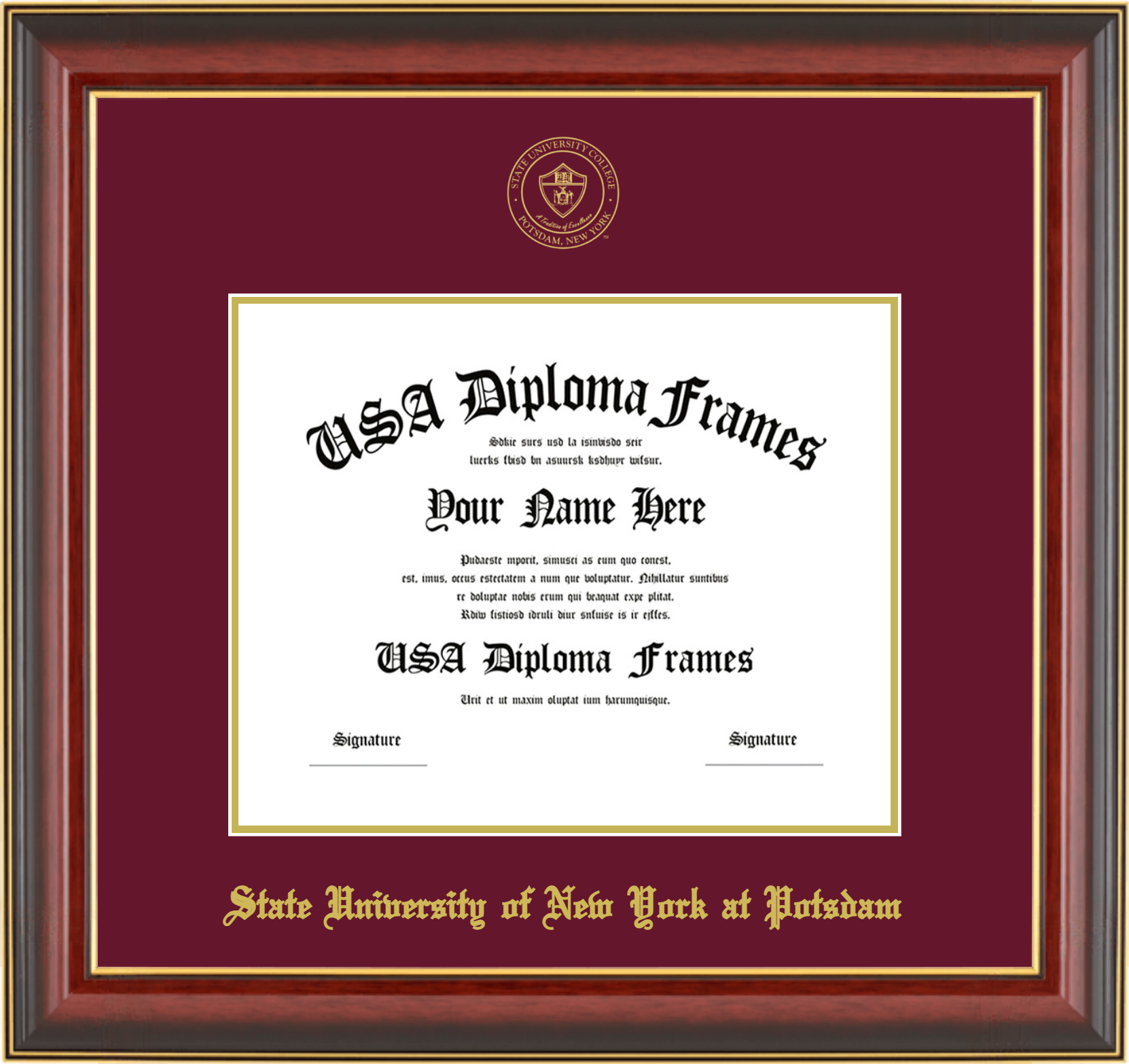 State University of New York at Potsdam – Single Horizontal Document ( Diploma ) – Cherry Mahogany Gold Trim Glossy – Maroon Mat – Gold Accent Mat – With Seal(University Seal Gold) – With Gold Embossing (State University of New York at Potsdam)