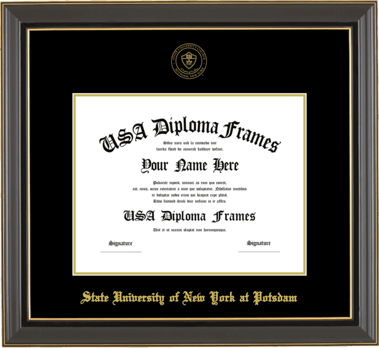 Want to explore more styles? Browse our full range of diploma frame layouts, or visit the State University of New York College at Potsdam to view options available for your school. Looking for a fully personalized design? Try our custom Frame Builder and create a frame that’s uniquely yours.