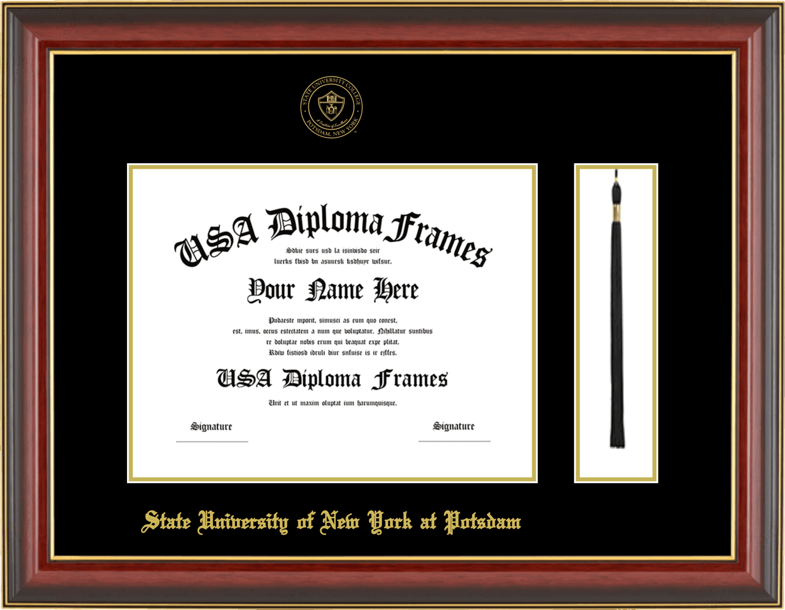 State University of New York College at Potsdam Diploma Frame with Tassel – Cherry Mahogany Gold Trim Glossy – Black and Gold Mat