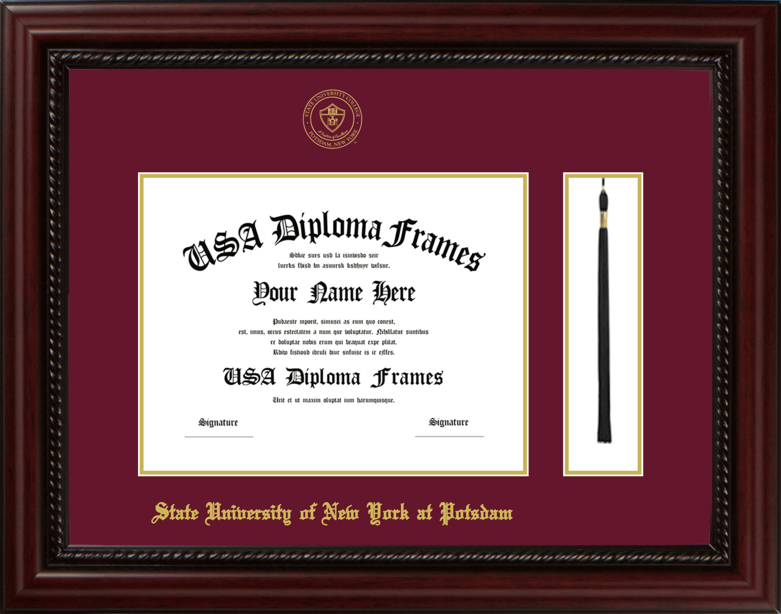State University of New York College at Potsdam Diploma Frame with Tassel – Executive Cherry Rope – Maroon and Gold Mat