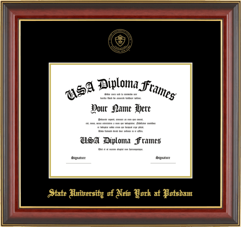Want to explore more styles? Browse our full range of diploma frame layouts, or visit the State University of New York College at Potsdam to view options available for your school. Looking for a fully personalized design? Try our custom Frame Builder and create a frame that’s uniquely yours.