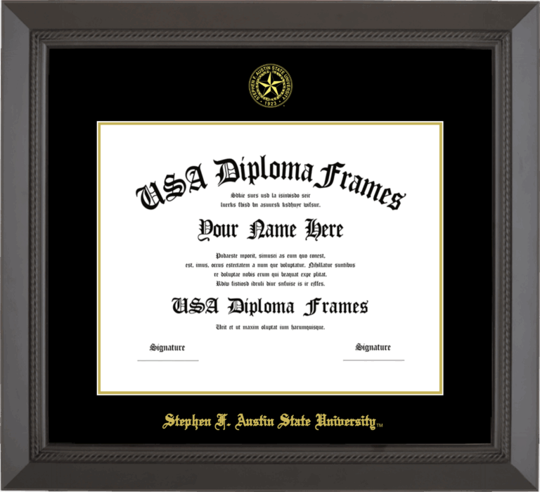 Want to explore more styles? Browse our full range of diploma frame layouts, or visit the Stephen F. Austin State University to view options available for your school. Looking for a fully personalized design? Try our custom Frame Builder and create a frame that’s uniquely yours.