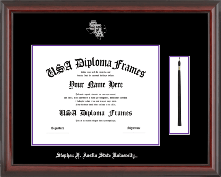 Want to explore more styles? Browse our full range of diploma frame layouts, or visit the Stephen F. Austin State University to view options available for your school. Looking for a fully personalized design? Try our custom Frame Builder and create a frame that’s uniquely yours.