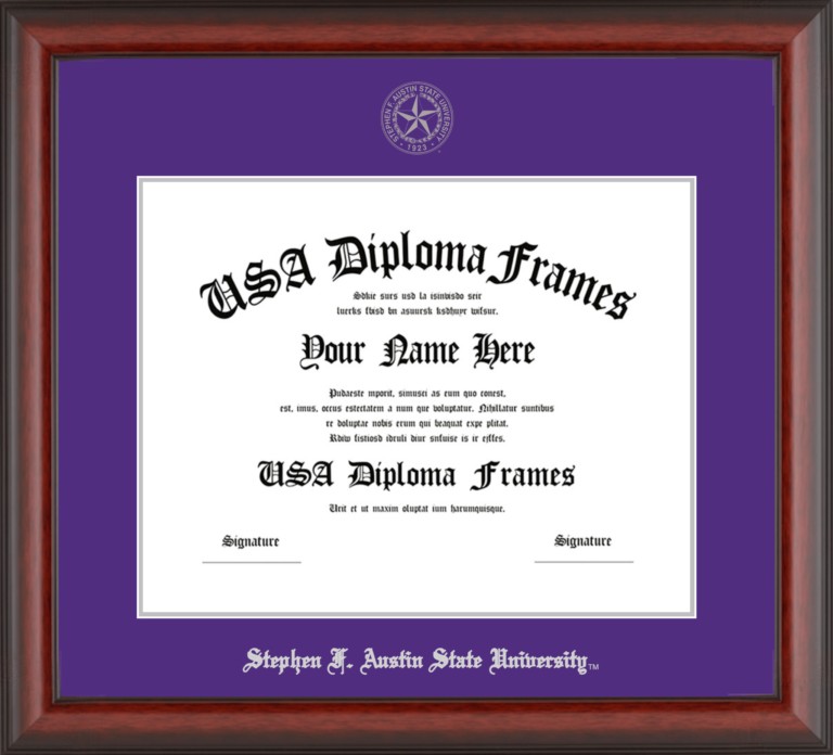 Want to explore more styles? Browse our full range of diploma frame layouts, or visit the Stephen F. Austin State University to view options available for your school. Looking for a fully personalized design? Try our custom Frame Builder and create a frame that’s uniquely yours.
