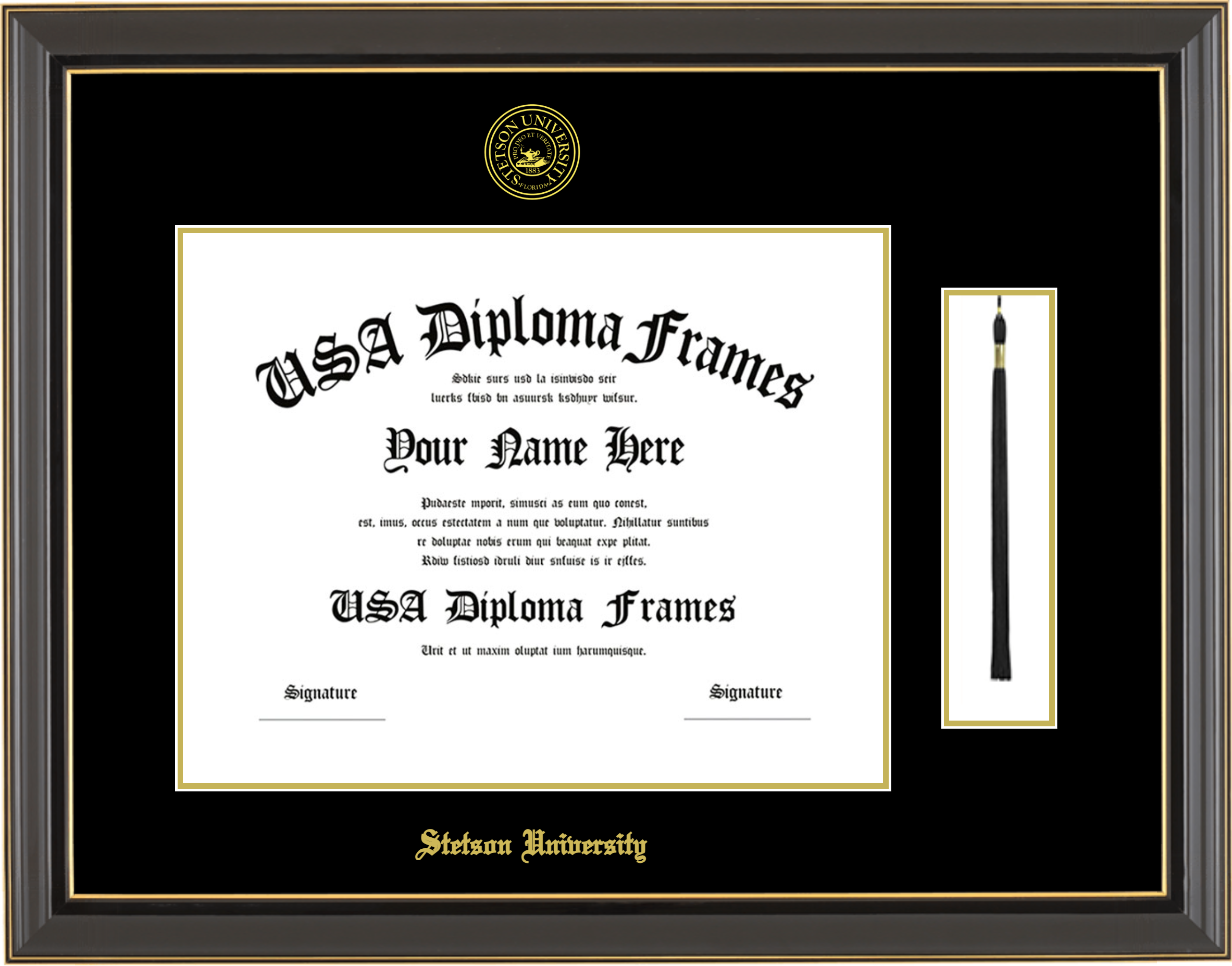 Stetson University Diploma Frame with Tassel – Black Gold Trim Glossy – Black and Gold Mat