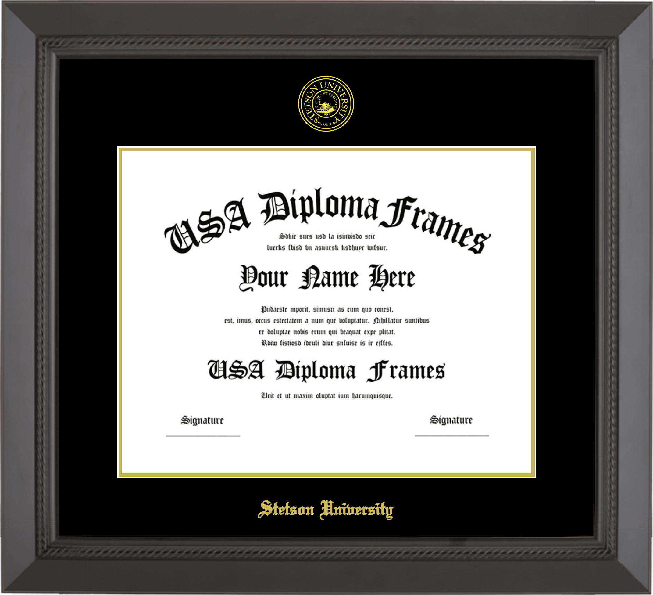 Stetson University Diploma Frame – Black Rope – Black and Gold Mat