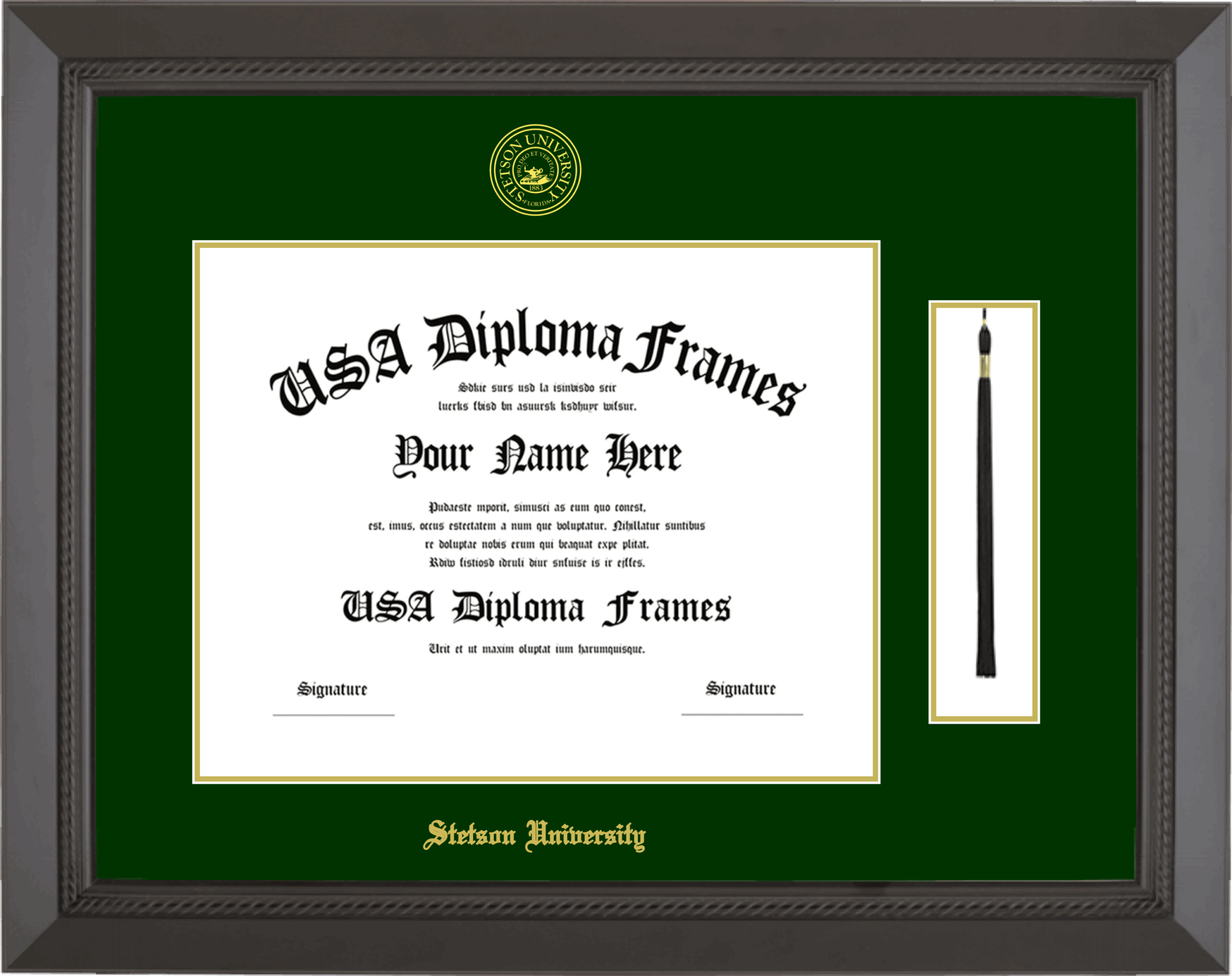 Stetson University Diploma Frame with Tassel – Black Rope – Winter Green and Gold Mat