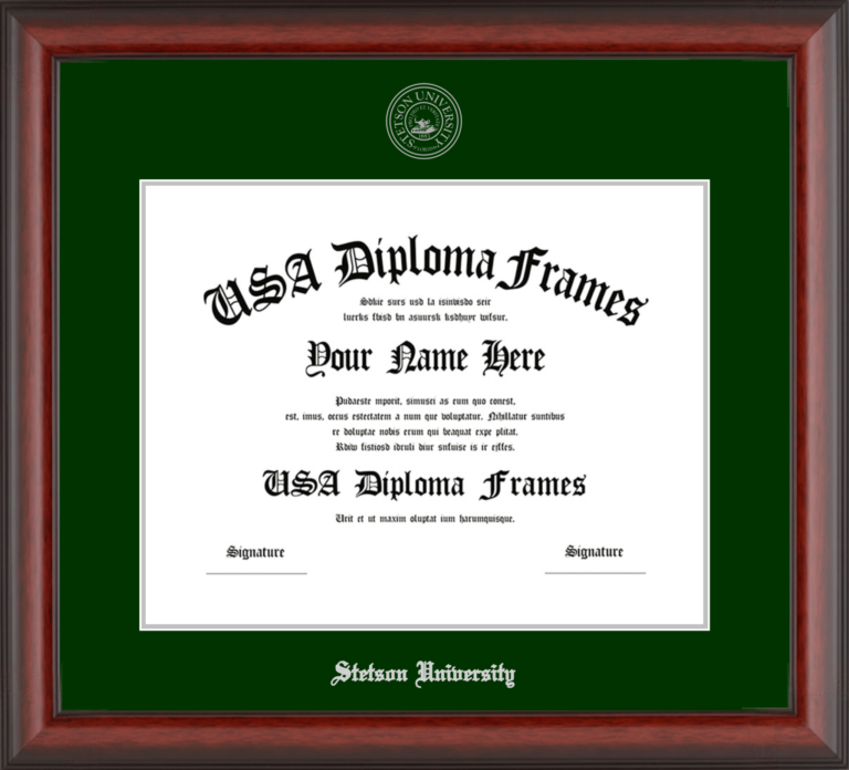 Want to explore more styles? Browse our full range of diploma frame layouts, or visit the Stetson University to view options available for your school. Looking for a fully personalized design? Try our custom Frame Builder and create a frame that’s uniquely yours.