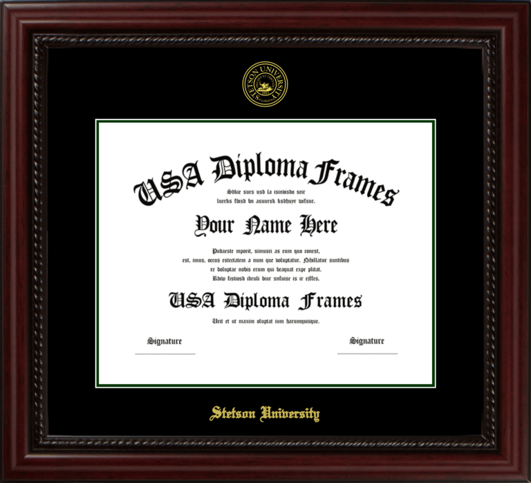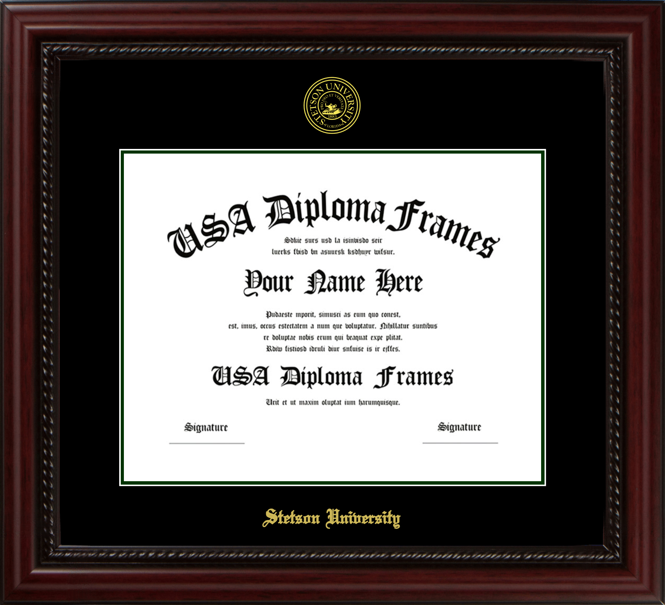 Stetson University Diploma Frame – Executive Cherry Rope – Black and Winter Green Mat