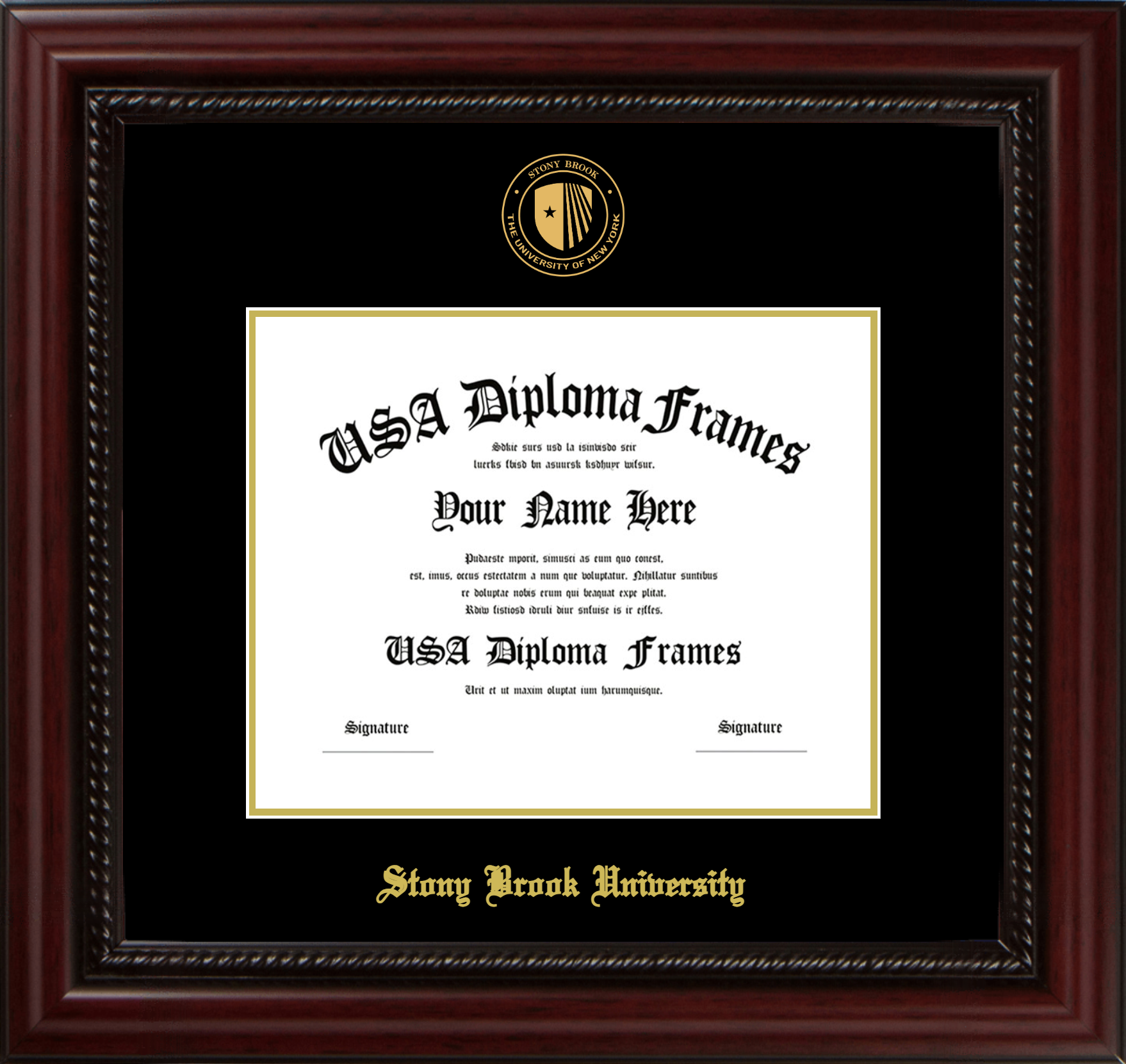 Stony Brook University Diploma Frame – Executive Cherry Rope – Black and Gold Mat