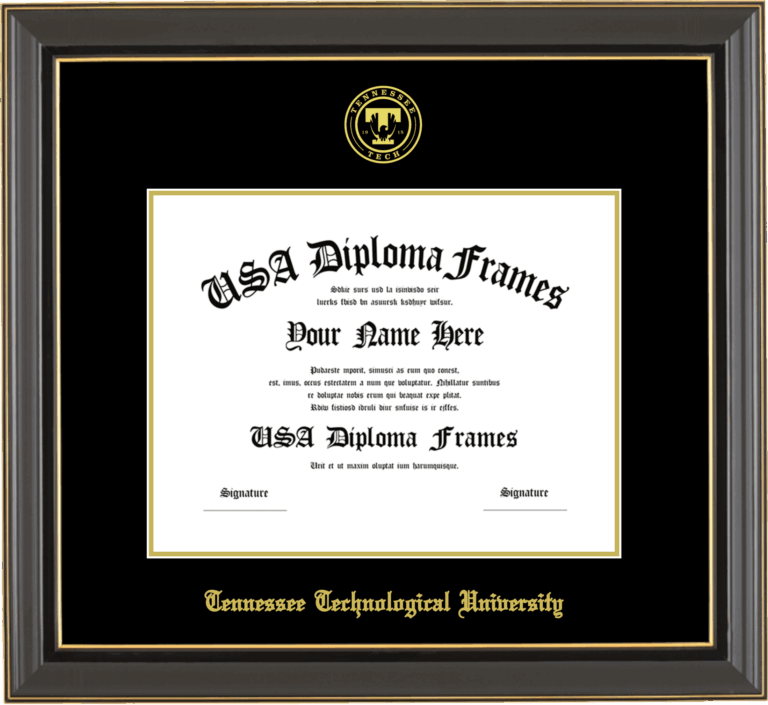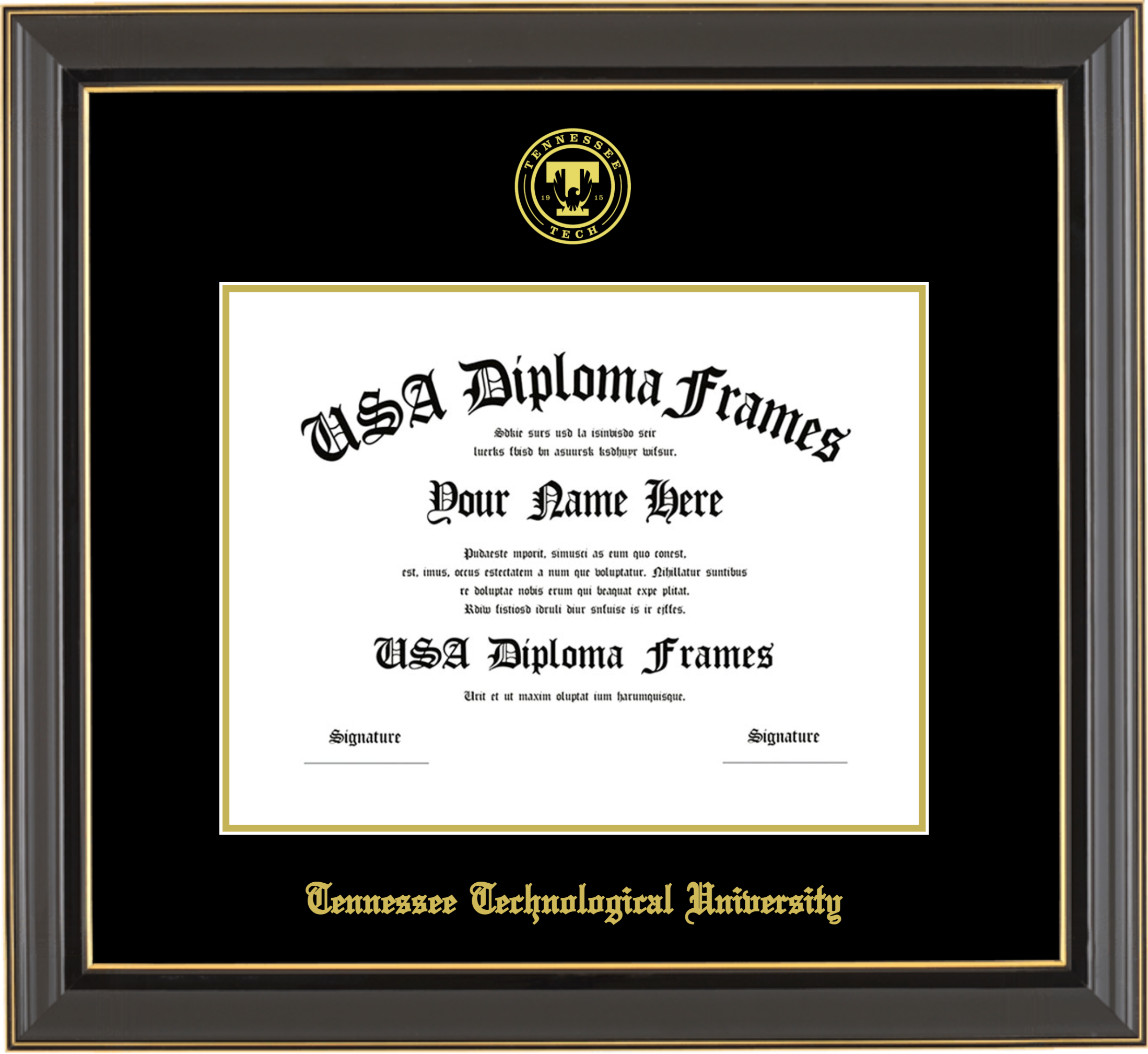Tennessee Technological University – Single Horizontal Document ( 8 1/2″x11″ ) – Black Gold Trim Glossy – Black Mat – Gold Accent Mat – With Seal(University Seal Gold) – With Gold Embossing (Tennessee Technological University)