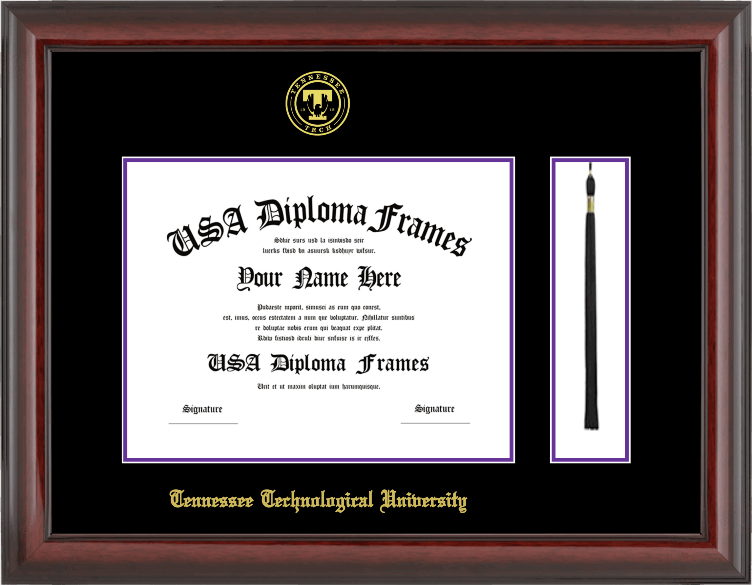 Tennessee Technological University – Single Horizontal Document ( 8 1/2″x11″ ) – Cherry Mahogany Glossy – Black Mat – Purple Accent Mat – With Tassel(Default) – With Seal(University Seal Gold) – With Gold Embossing (Tennessee Technological University)