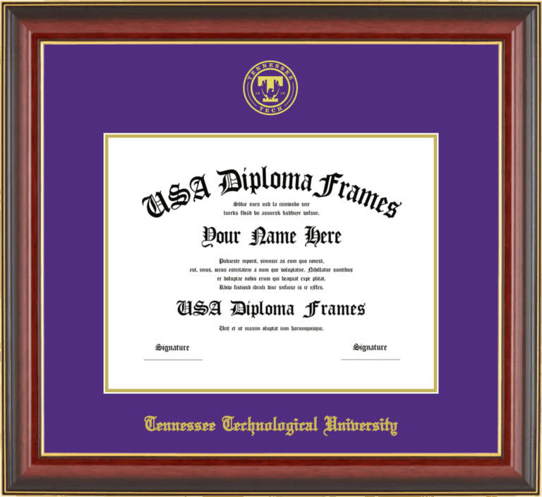 Want to explore more styles? Browse our full range of diploma frame layouts, or visit the Tennessee Technological University to view options available for your school. Looking for a fully personalized design? Try our custom Frame Builder and create a frame that’s uniquely yours.