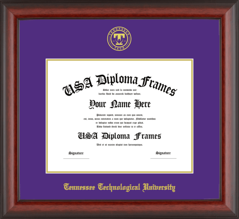 Want to explore more styles? Browse our full range of diploma frame layouts, or visit the Tennessee Technological University to view options available for your school. Looking for a fully personalized design? Try our custom Frame Builder and create a frame that’s uniquely yours.