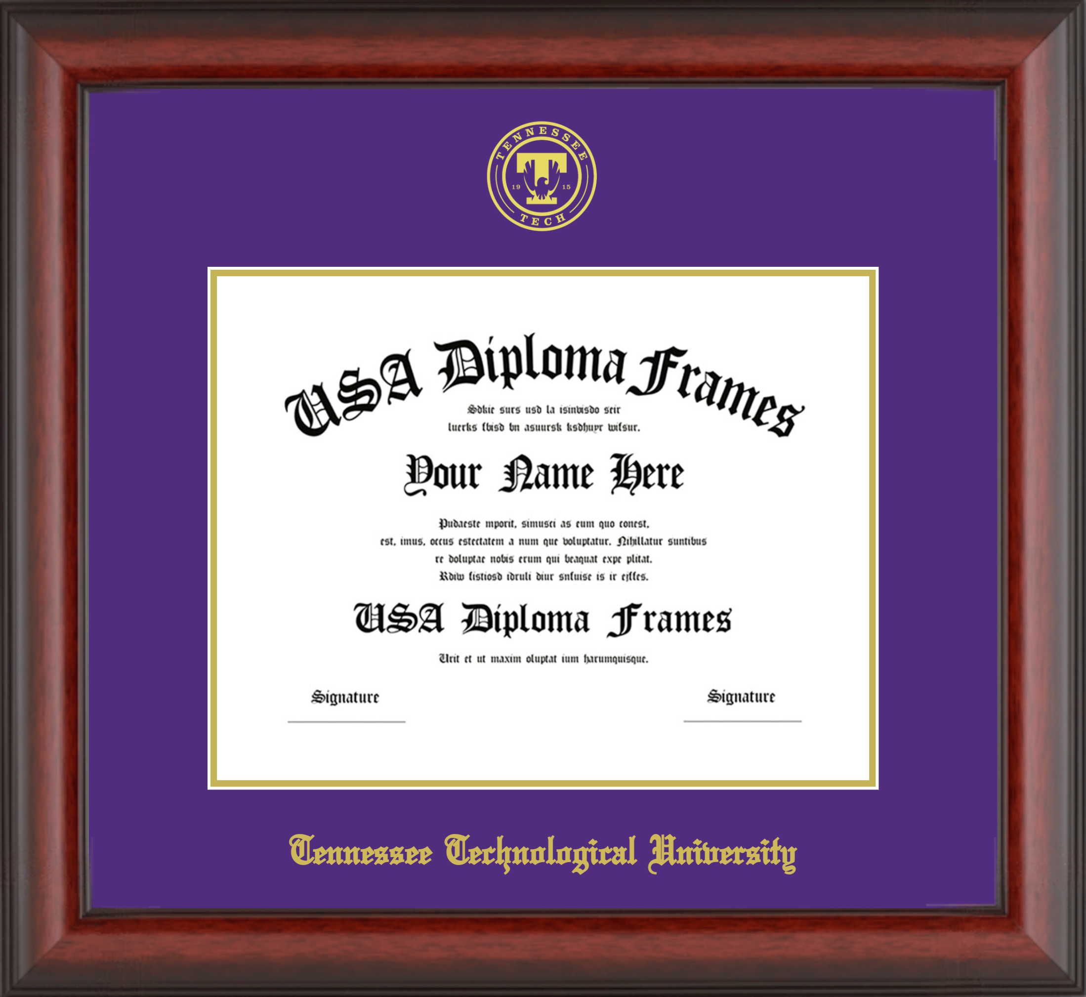 Tennessee Technological University – Single Horizontal Document ( 8 1/2″x11″ ) – Cherry Mahogany Matte – Purple Mat – Gold Accent Mat – With Seal(University Seal Gold) – With Gold Embossing (Tennessee Technological University)