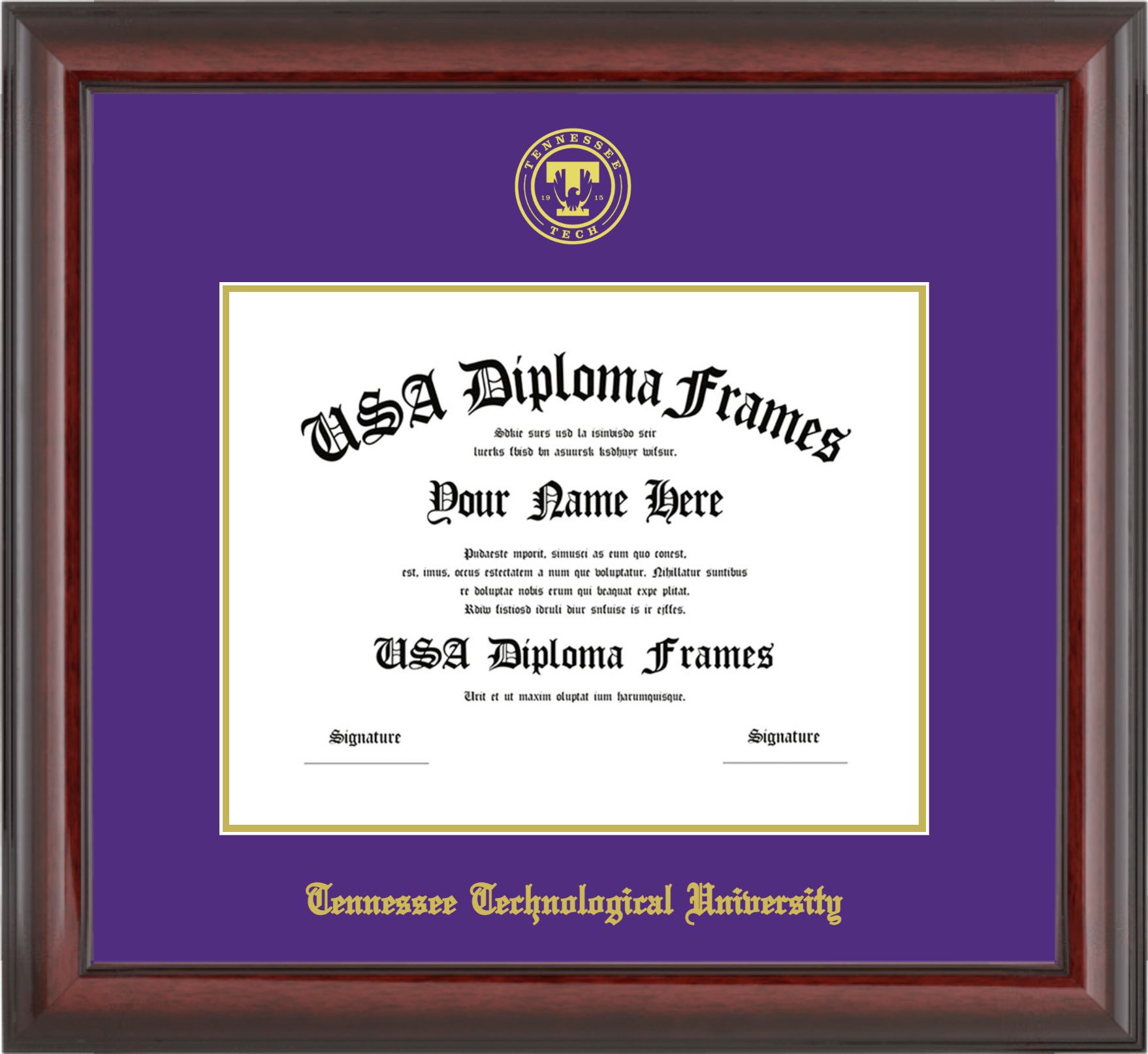 Tennessee Technological University – Single Horizontal Document ( Diploma ) – Cherry Mahogany Glossy – Purple Mat – Gold Accent Mat – With Seal(University Seal Gold) – With Gold Embossing (Tennessee Technological University)