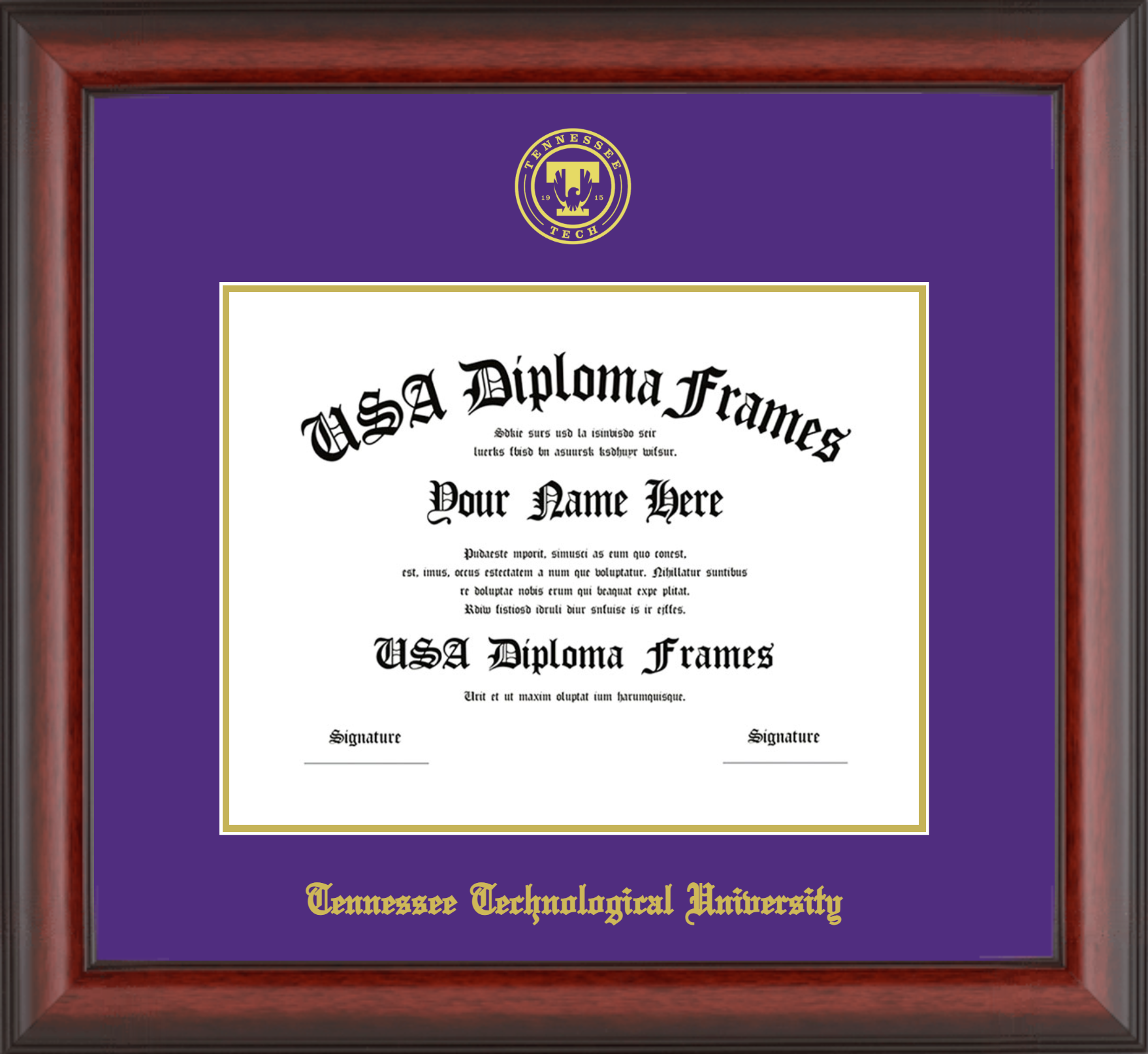 Tennessee Technological University – Single Horizontal Document ( Diploma ) – Cherry Mahogany Matte – Purple Mat – Gold Accent Mat – With Seal(University Seal Gold) – With Gold Embossing (Tennessee Technological University)