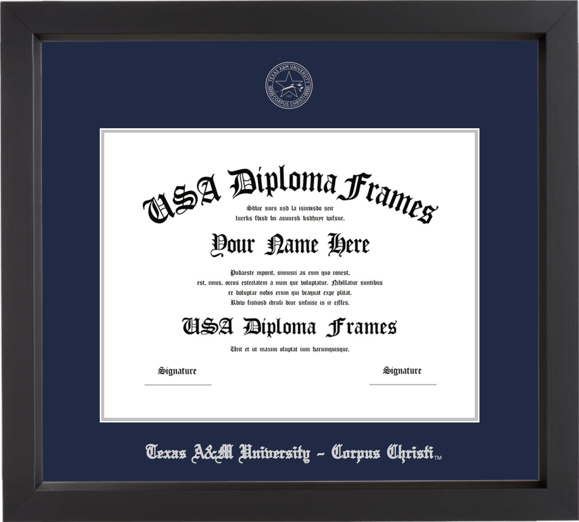 Texas A&M University – Corpus Christi – Single Horizontal Document ( Diploma ) – Black Matte – Navy Mat – Silver Accent Mat – With Seal(University Seal Silver) – With Silver Embossing (Texas A&M University – Corpus Christi)