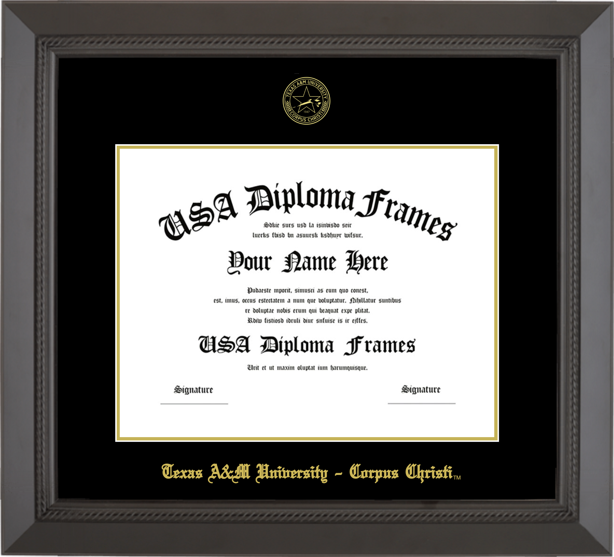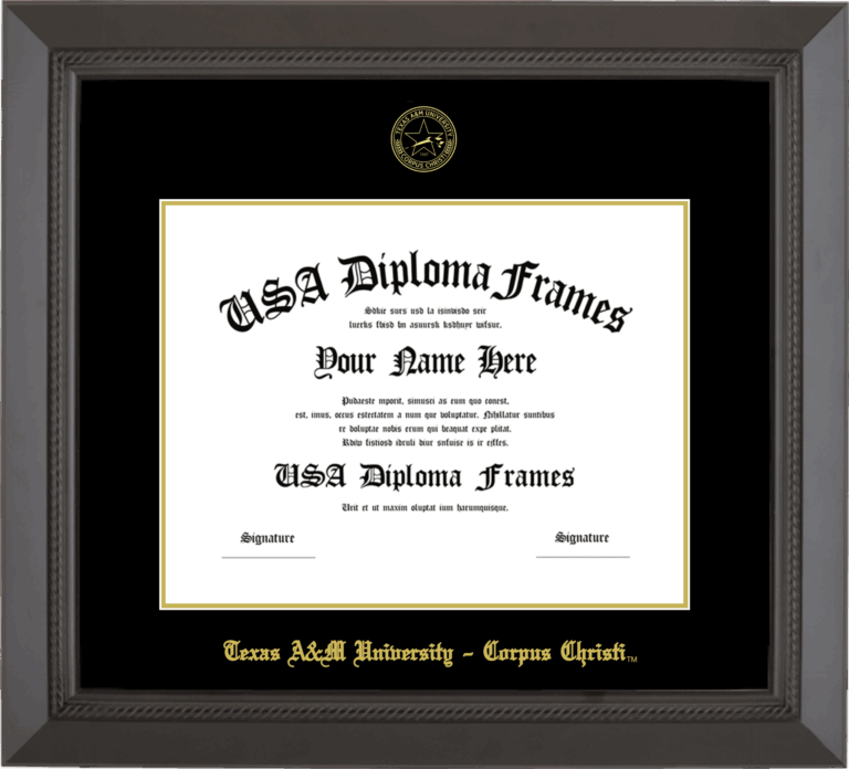 Texas A&M University – Corpus Christi Diploma Frame – Black Rope – Black and Gold Mat