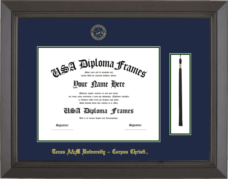 Texas A&M University – Corpus Christi Diploma Frame with Tassel – Black Rope – Navy and Winter Green Mat