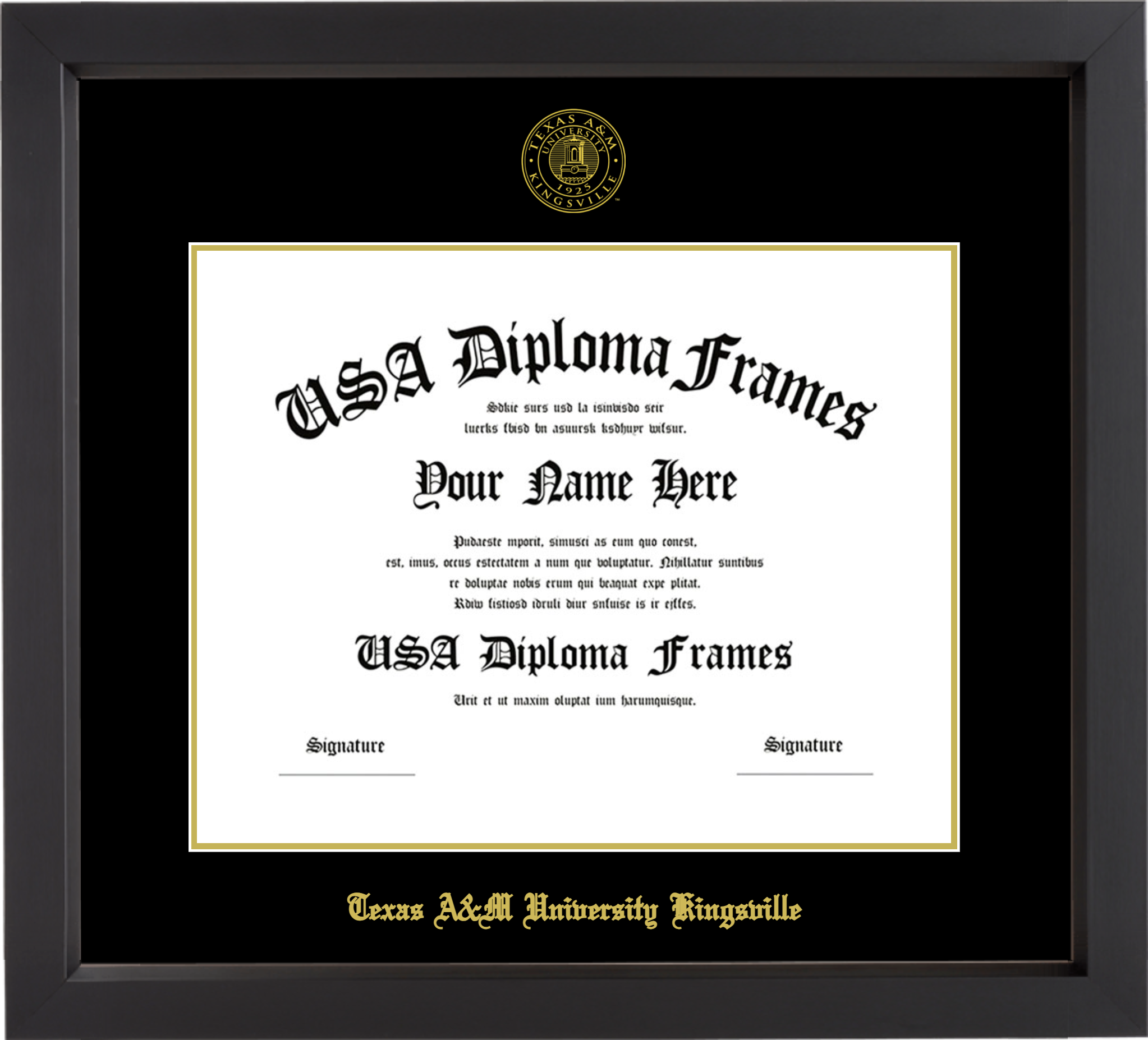 Texas A&M University – Kingsville Diploma Frame – Black Matte – Black and Gold Mat