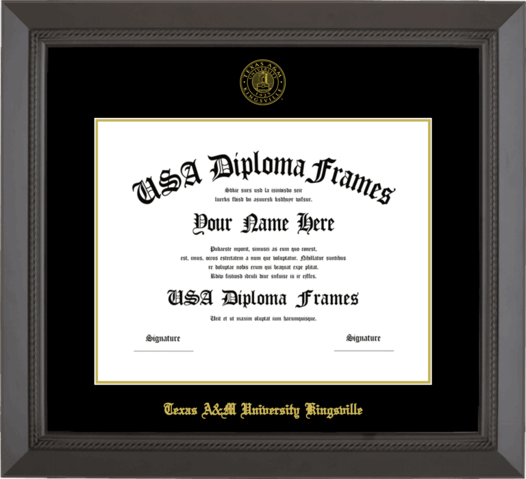 Texas A&M University – Kingsville Diploma Frame – Black Rope – Black and Gold Mat