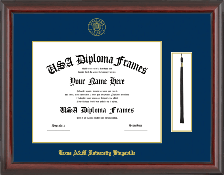 Texas A&M University – Kingsville Diploma Frame with Tassel – Cherry Mahogany Glossy – Navy and Gold Mat