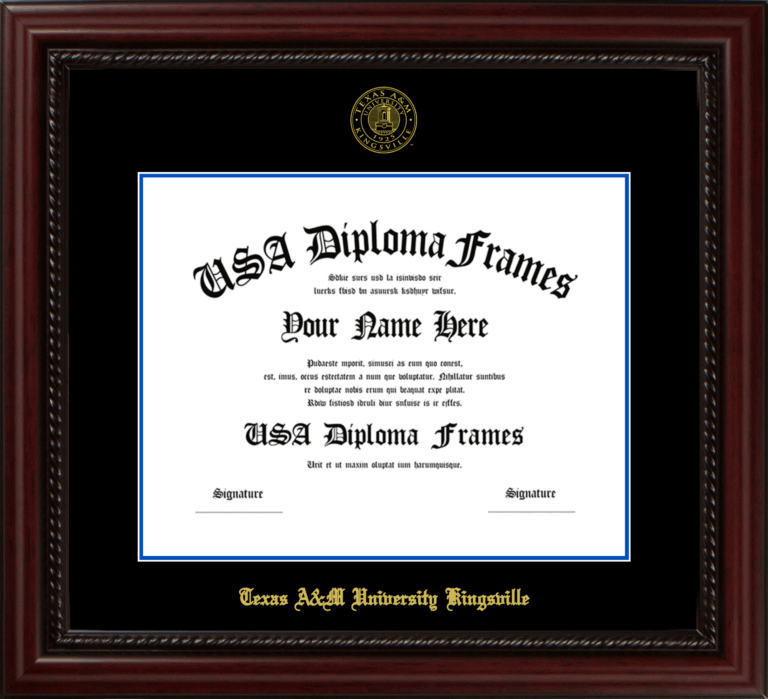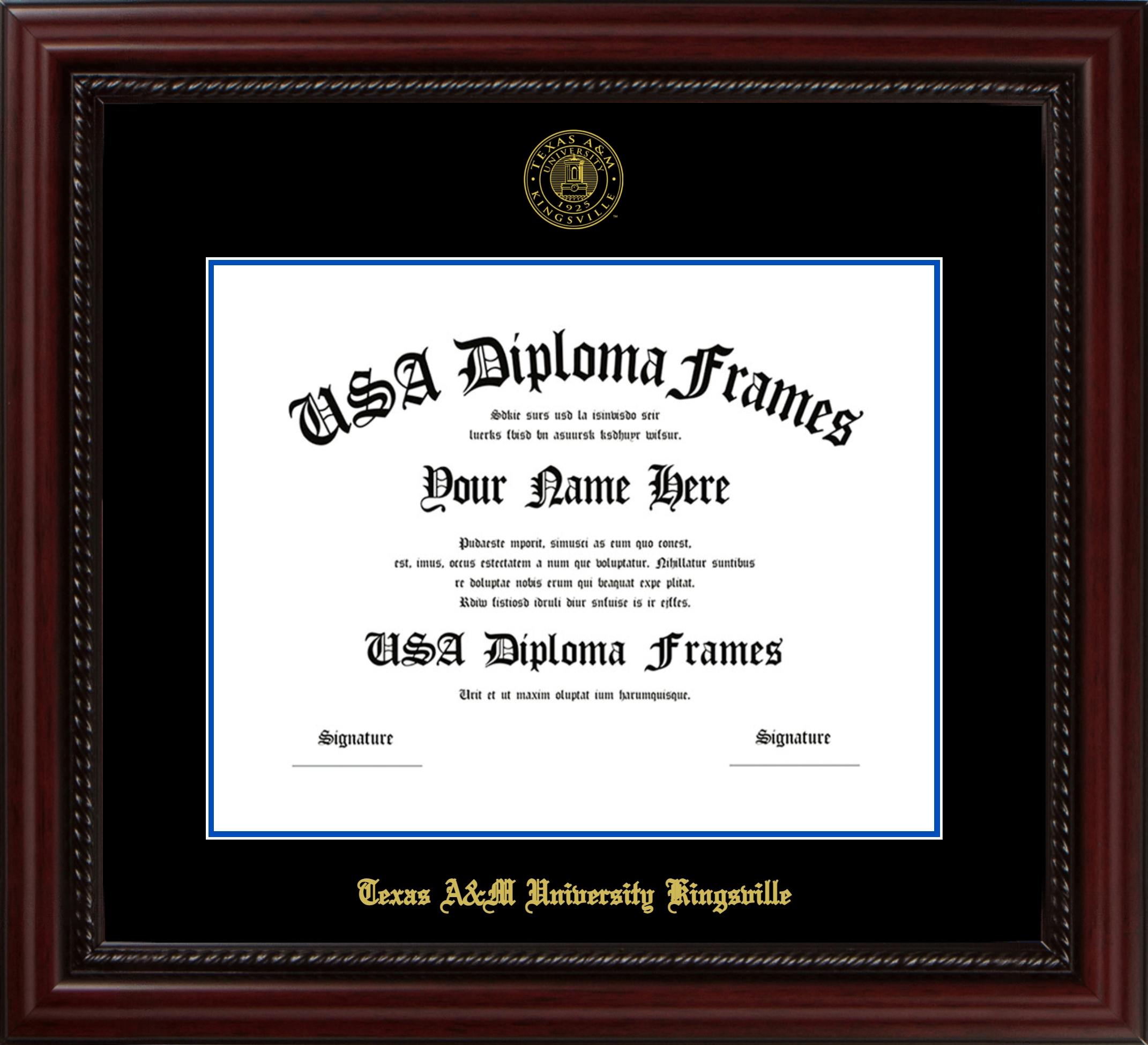 Texas A&M University – Kingsville Diploma Frame – Executive Cherry Rope – Black and Royal Blue Mat