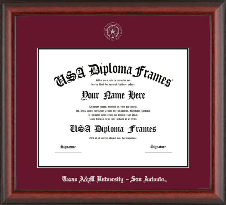 Want to explore more styles? Browse our full range of diploma frame layouts, or visit the Texas A&M University - San Antonio to view options available for your school. Looking for a fully personalized design? Try our custom Frame Builder and create a frame that’s uniquely yours.
