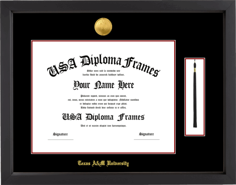 Texas A&M University Diploma Frame with Tassel – Black Matte – Black and Maroon Mat – Medallion