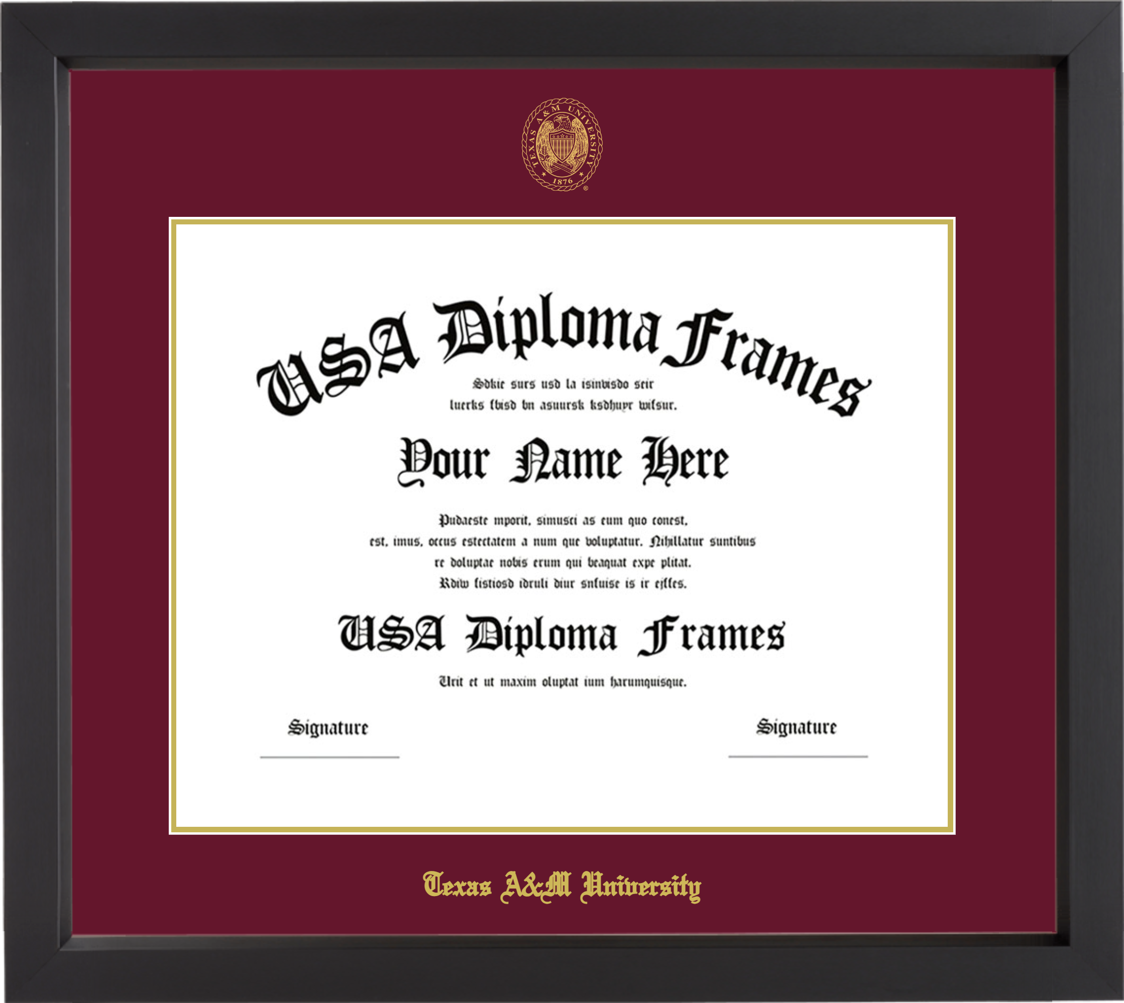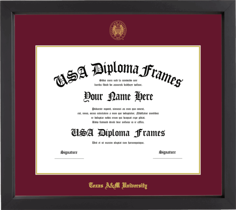 Texas A&M University Diploma Frame – Black Matte – Maroon and Gold Mat