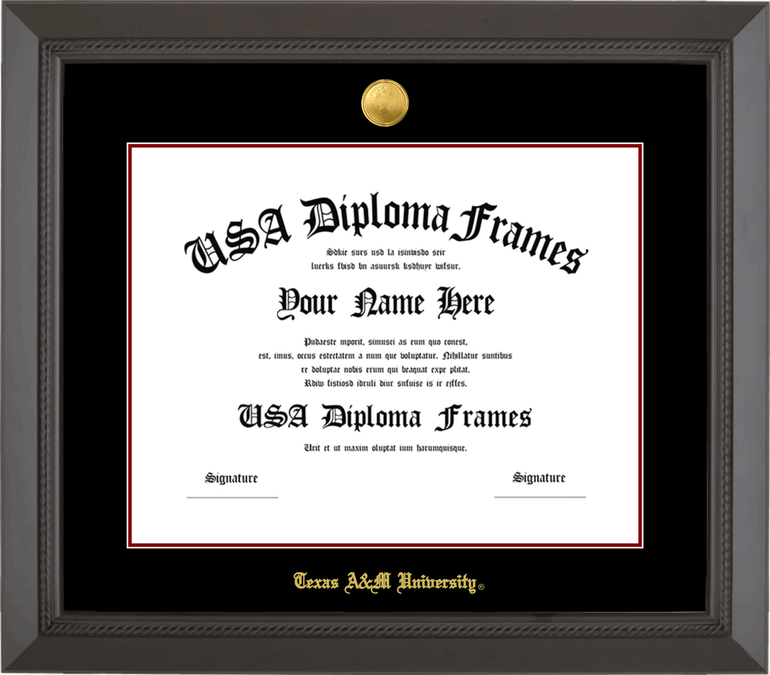 Texas A&M University – Single Horizontal Document ( 12.5 x 16 ) – Black Rope – Black Mat – Maroon Accent Mat – With Seal(University Seal Medallion) – With Gold Embossing (Texas A&M University)
