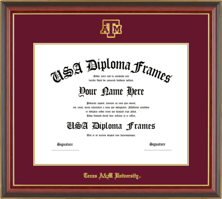 Want to explore more styles? Browse our full range of diploma frame layouts, or visit the Texas A&M University to view options available for your school. Looking for a fully personalized design? Try our custom Frame Builder and create a frame that’s uniquely yours.