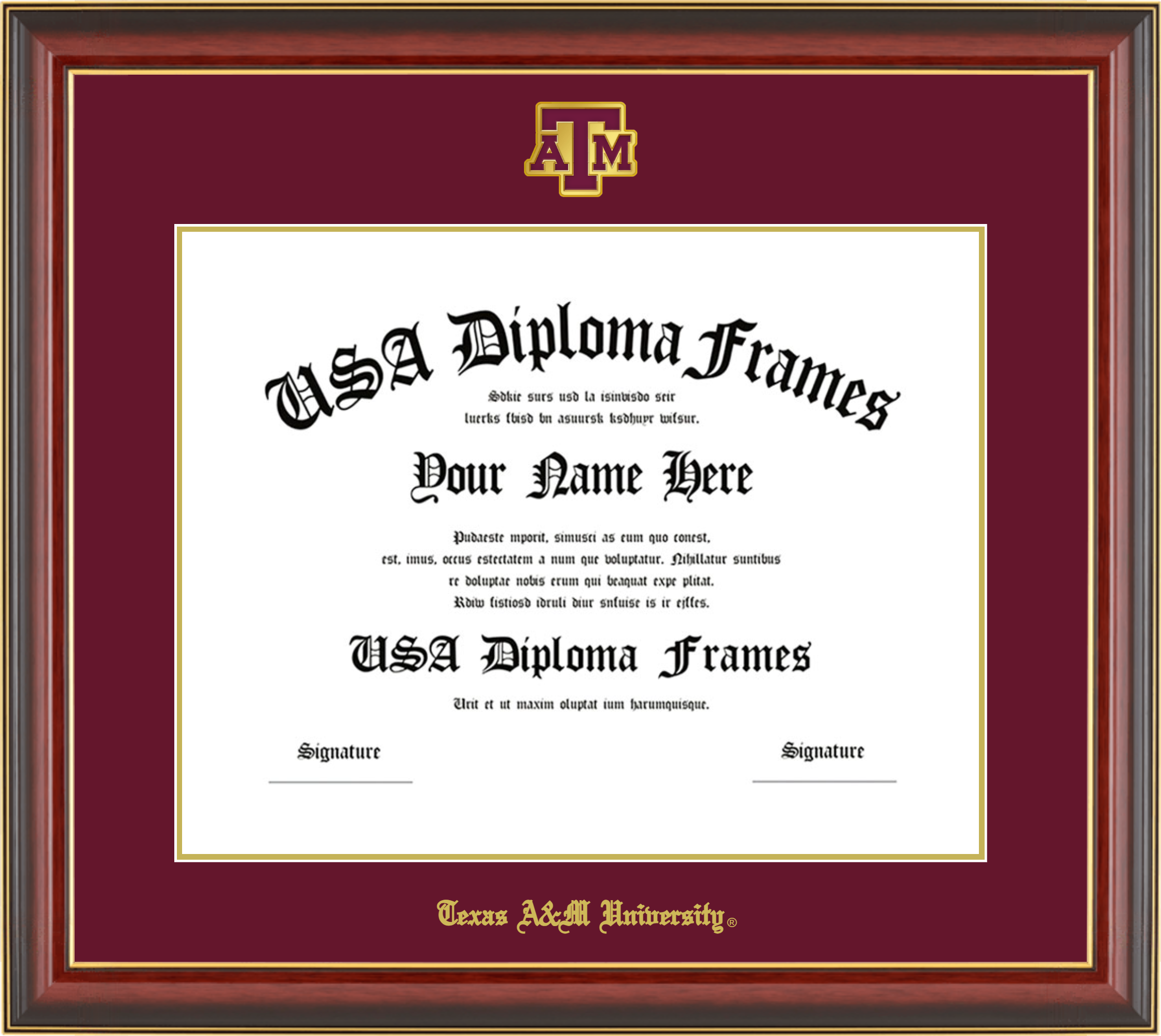 Texas A&M University – Single Horizontal Document ( 12.5 x 16 ) – Cherry Mahogany Gold Trim Glossy – Maroon Mat – Gold Accent Mat – With Seal(University Logo Medallion) – With Gold Embossing (Texas A&M University)