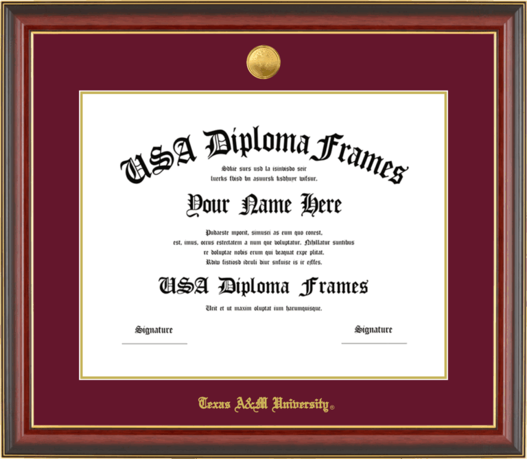 Want to explore more styles? Browse our full range of diploma frame layouts, or visit the Texas A&M University to view options available for your school. Looking for a fully personalized design? Try our custom Frame Builder and create a frame that’s uniquely yours.