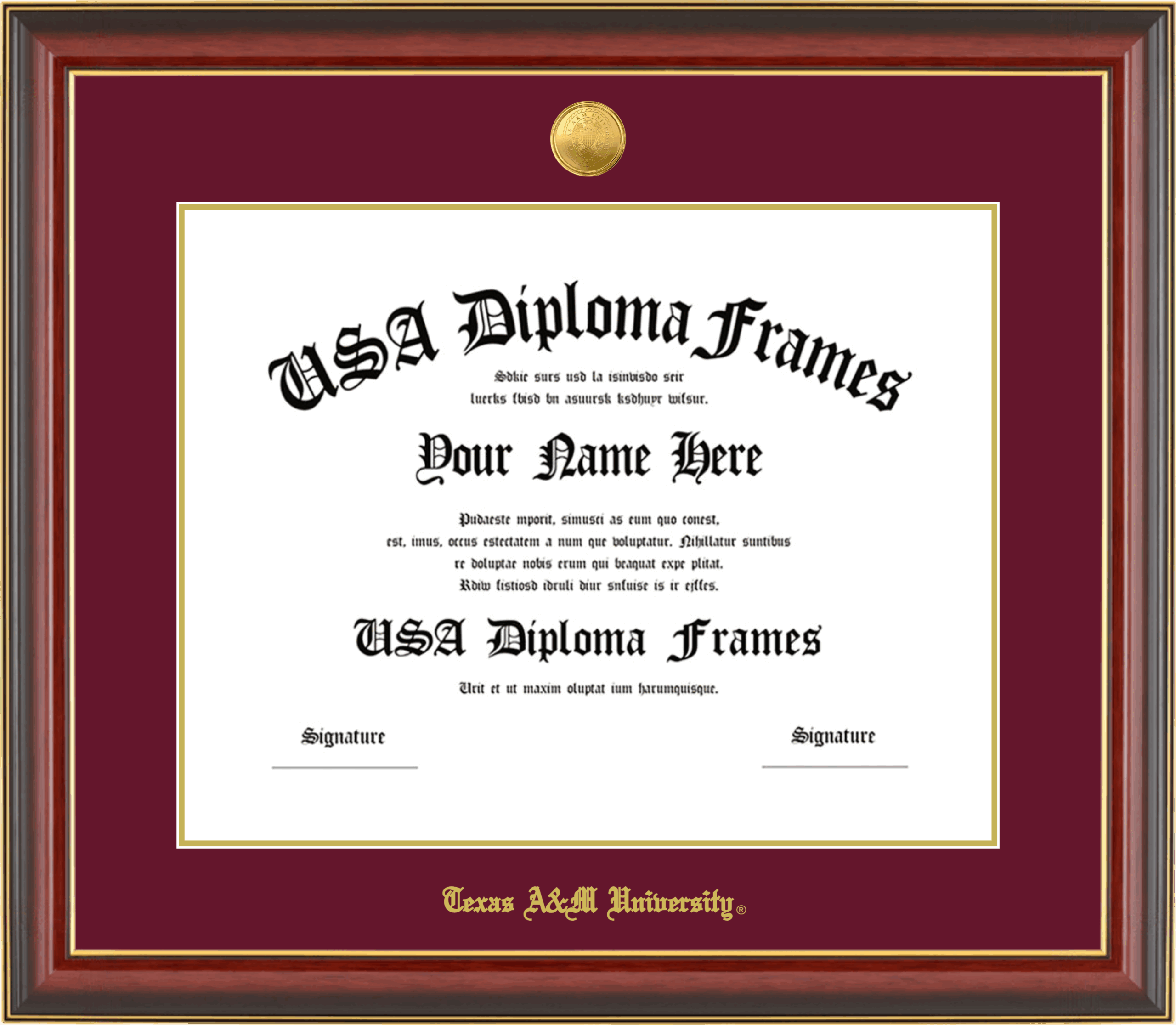 Texas A&M University – Single Horizontal Document ( 12.5 x 16 ) – Cherry Mahogany Gold Trim Glossy – Maroon Mat – Gold Accent Mat – With Seal(University Seal Medallion) – With Gold Embossing (Texas A&M University)