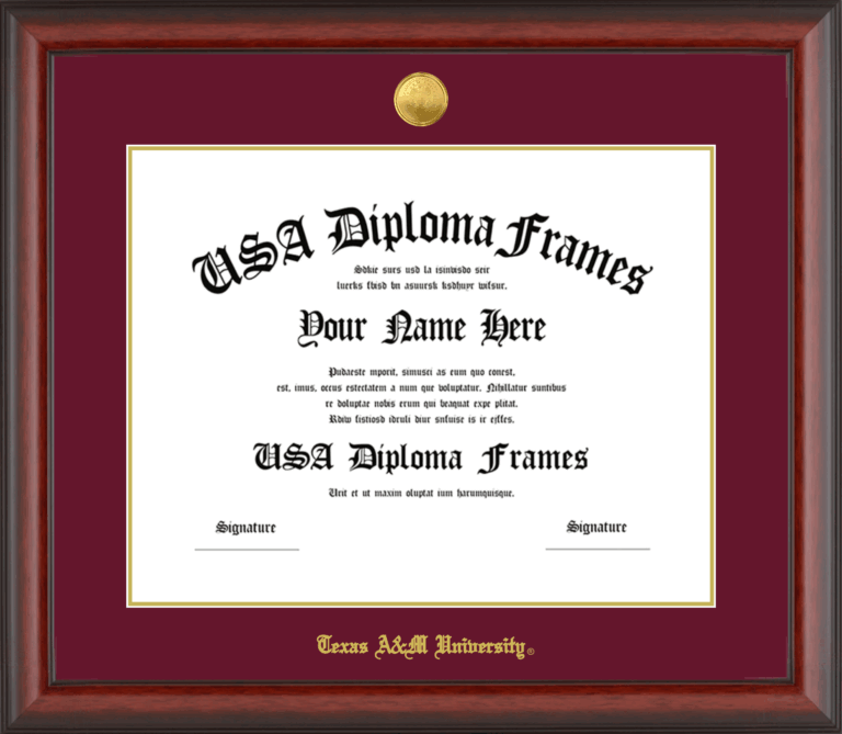 Want to explore more styles? Browse our full range of diploma frame layouts, or visit the Texas A&M University to view options available for your school. Looking for a fully personalized design? Try our custom Frame Builder and create a frame that’s uniquely yours.