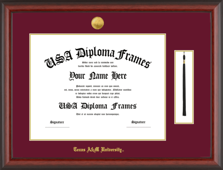 Want to explore more styles? Browse our full range of diploma frame layouts, or visit the Texas A&M University to view options available for your school. Looking for a fully personalized design? Try our custom Frame Builder and create a frame that’s uniquely yours.