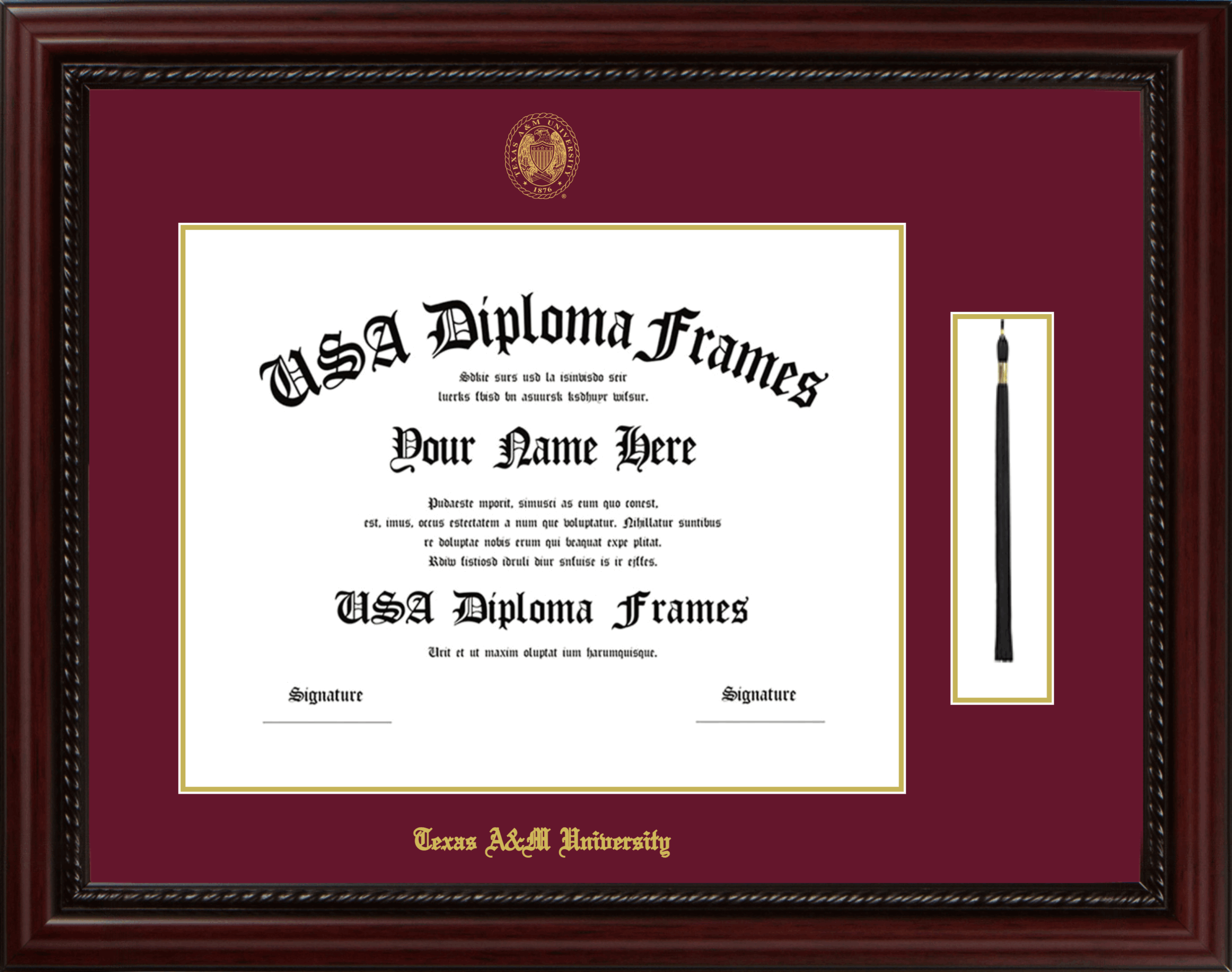 Texas A&M University Diploma Frame with Tassel – Executive Cherry Rope – Maroon and Gold Mat