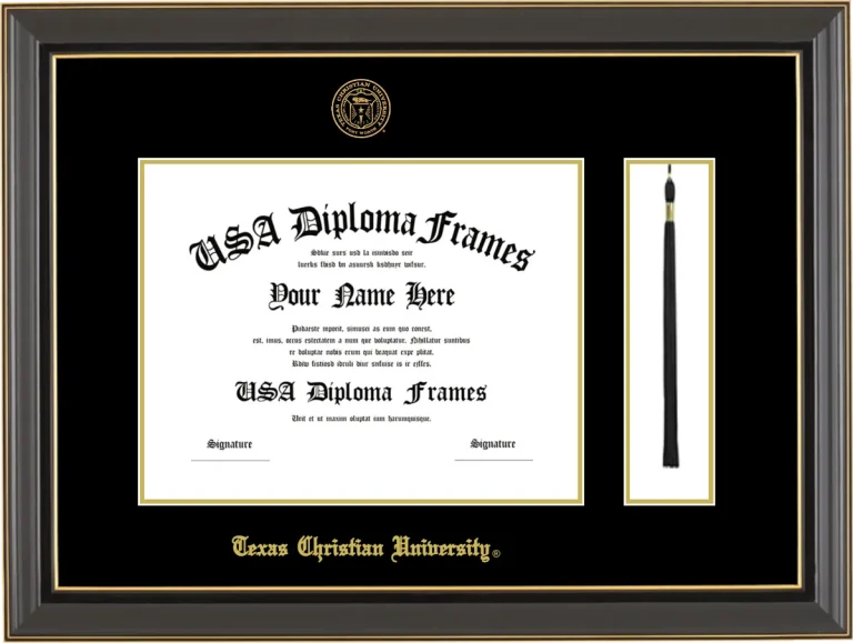 Want to explore more styles? Browse our full range of diploma frame layouts, or visit the Texas Christian University to view options available for your school. Looking for a fully personalized design? Try our custom Frame Builder and create a frame that’s uniquely yours.