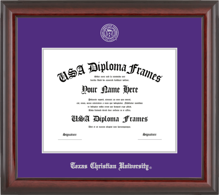 Want to explore more styles? Browse our full range of diploma frame layouts, or visit the Texas Christian University to view options available for your school. Looking for a fully personalized design? Try our custom Frame Builder and create a frame that’s uniquely yours.
