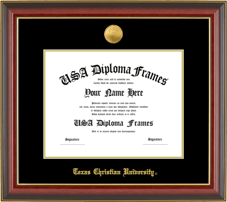 Want to explore more styles? Browse our full range of diploma frame layouts, or visit the Texas Christian University to view options available for your school. Looking for a fully personalized design? Try our custom Frame Builder and create a frame that’s uniquely yours.